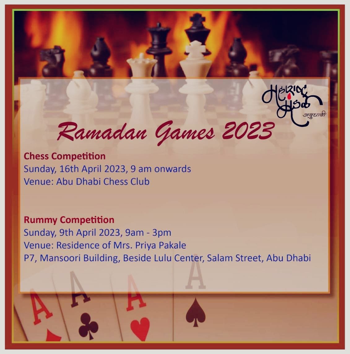 MMAD is happy to announce the Ramadan Games 2023 with Rummy competitions for our members. Please register using you login credentials at the earliest. Rummy Competition Ladies & Gents (18 years & above) Date: Sunday, 9th April 2023, 9am – 3pm Venue: Residence of Mrs. Priya Pakale P7, Mansoori Building, Beside Lulu Center, Salam Street, […]