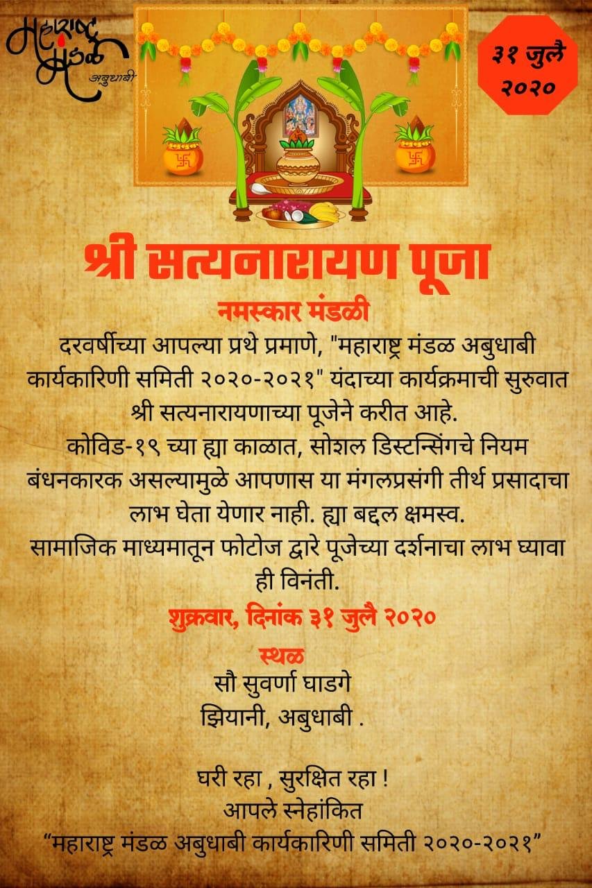 *Namaskar Mandali*, As per Mandal Tradition, we are starting our tenure of MMAD Committee 2020-21 with *Shri Satyanaran Pooja* on Friday 31st July 2020. As all of us are aware, this year has been very challenging to everyone and we still continue to reel under the Covid19 threat. As responsible expats, we will be adhering […]